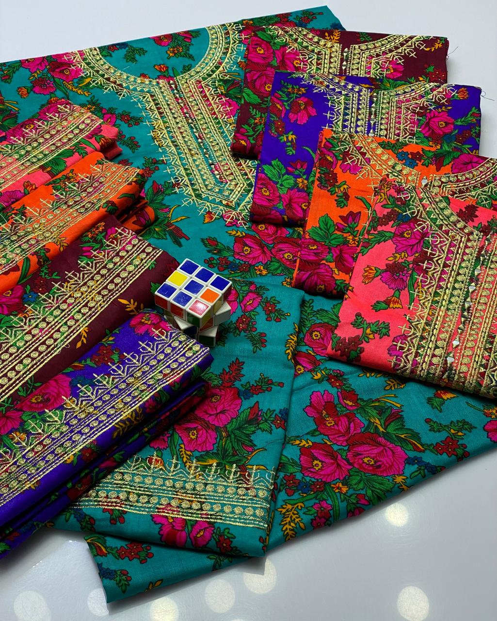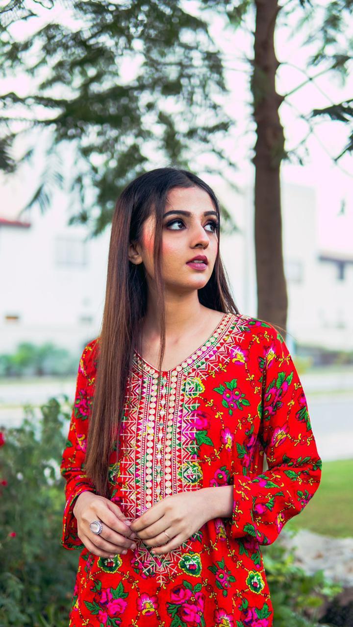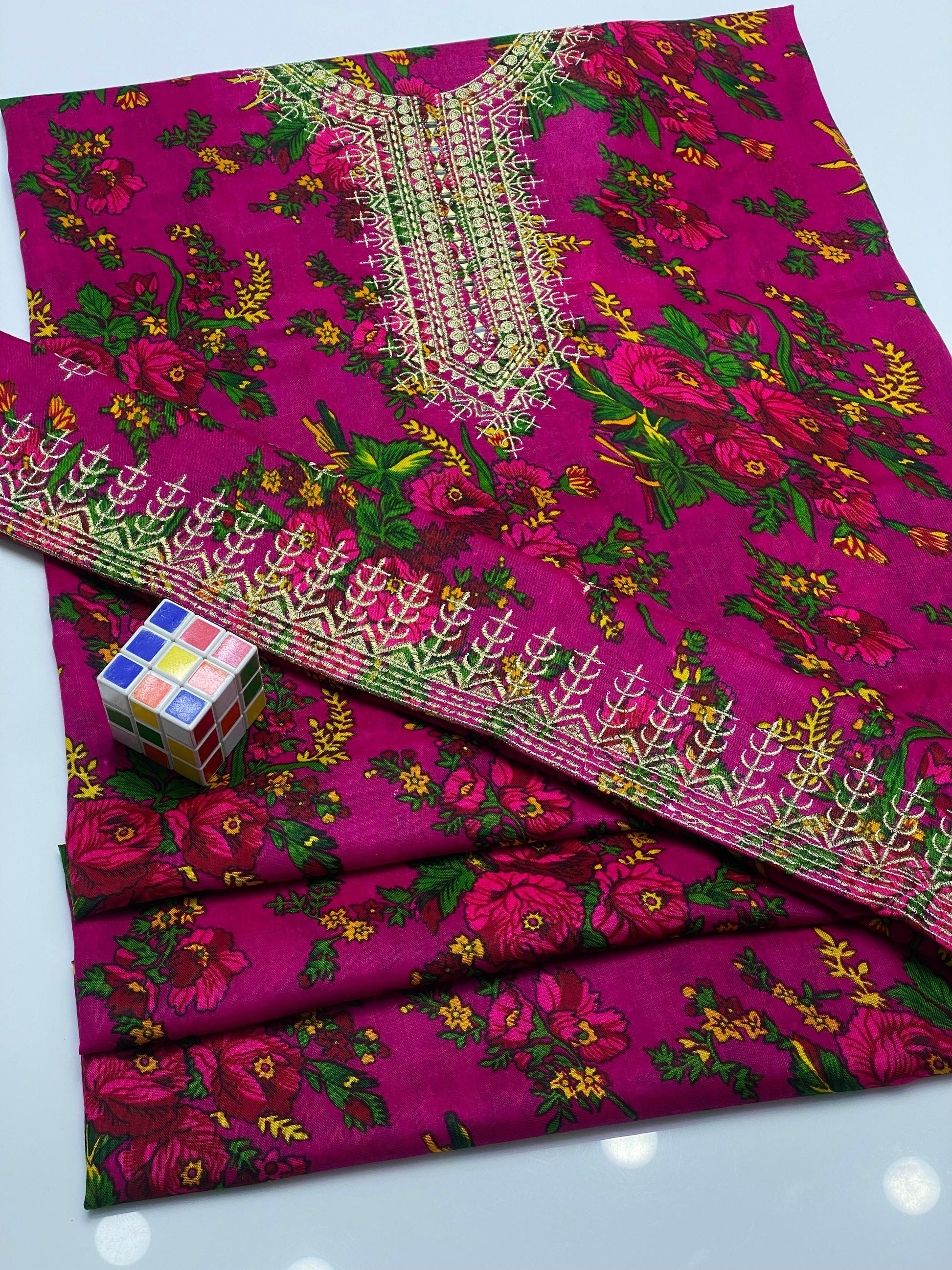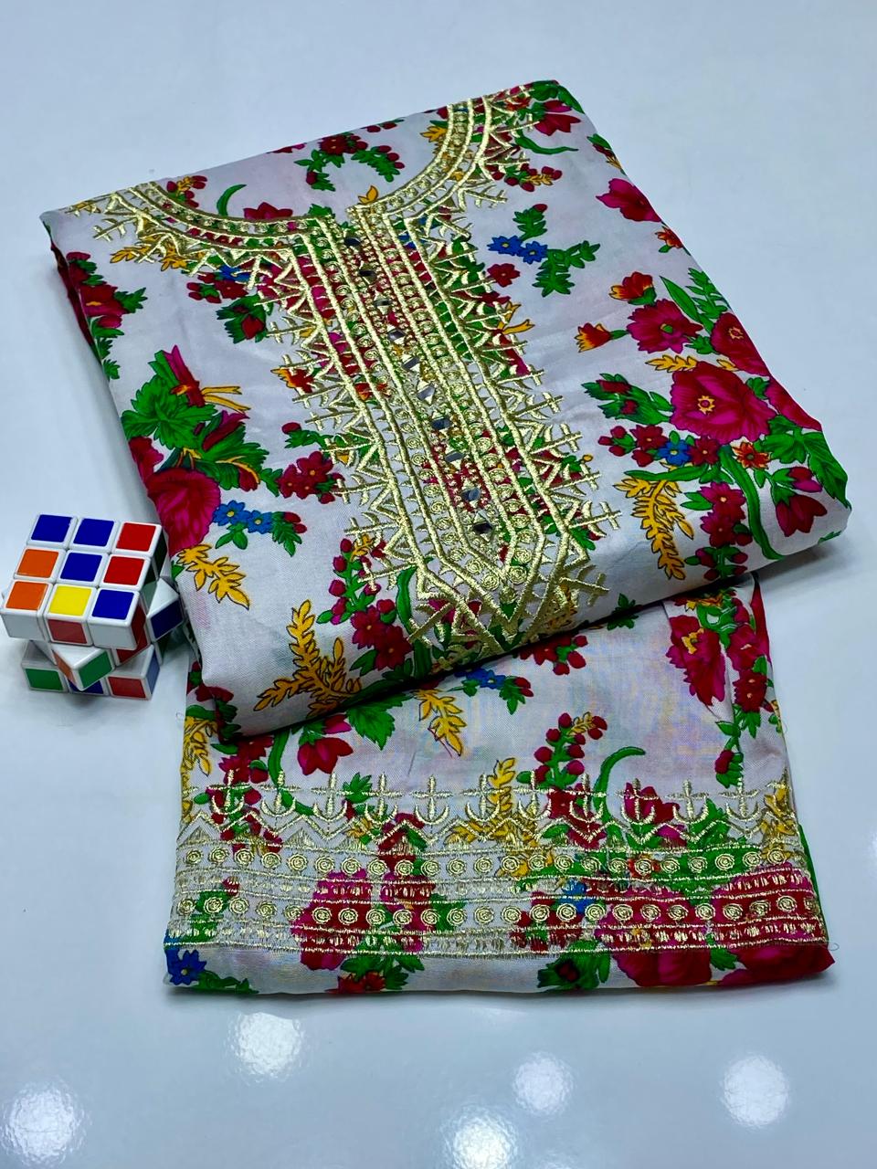 "_ALHAMDULILAH, introducing _Gul Naar's stunning 2-piece collection! Made from premium Swiss Marina fabric, the shirt features intricate Tilla Gala embroidery work paired with digital print on the front, back, and sleeves. The trouser boasts beautiful embroidery work, adding a touch of elegance to this outfit.